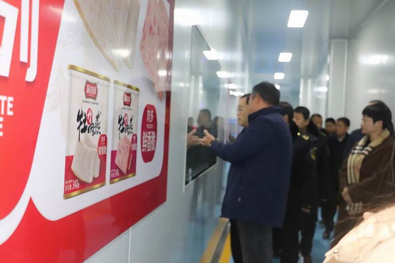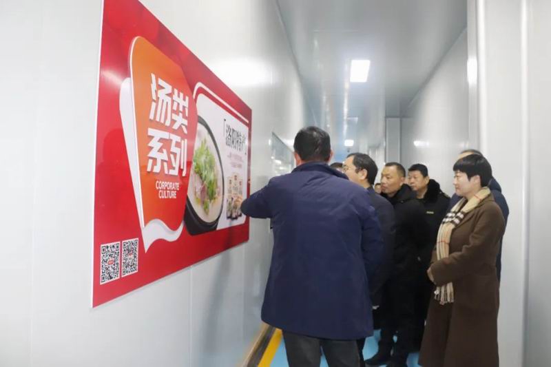 領導們對原料加工制作包裝的全流程生產線和樣品展覽室,并就企業品牌建設、產品質量控制及標準化生產等情況與領導們進行深入交流。